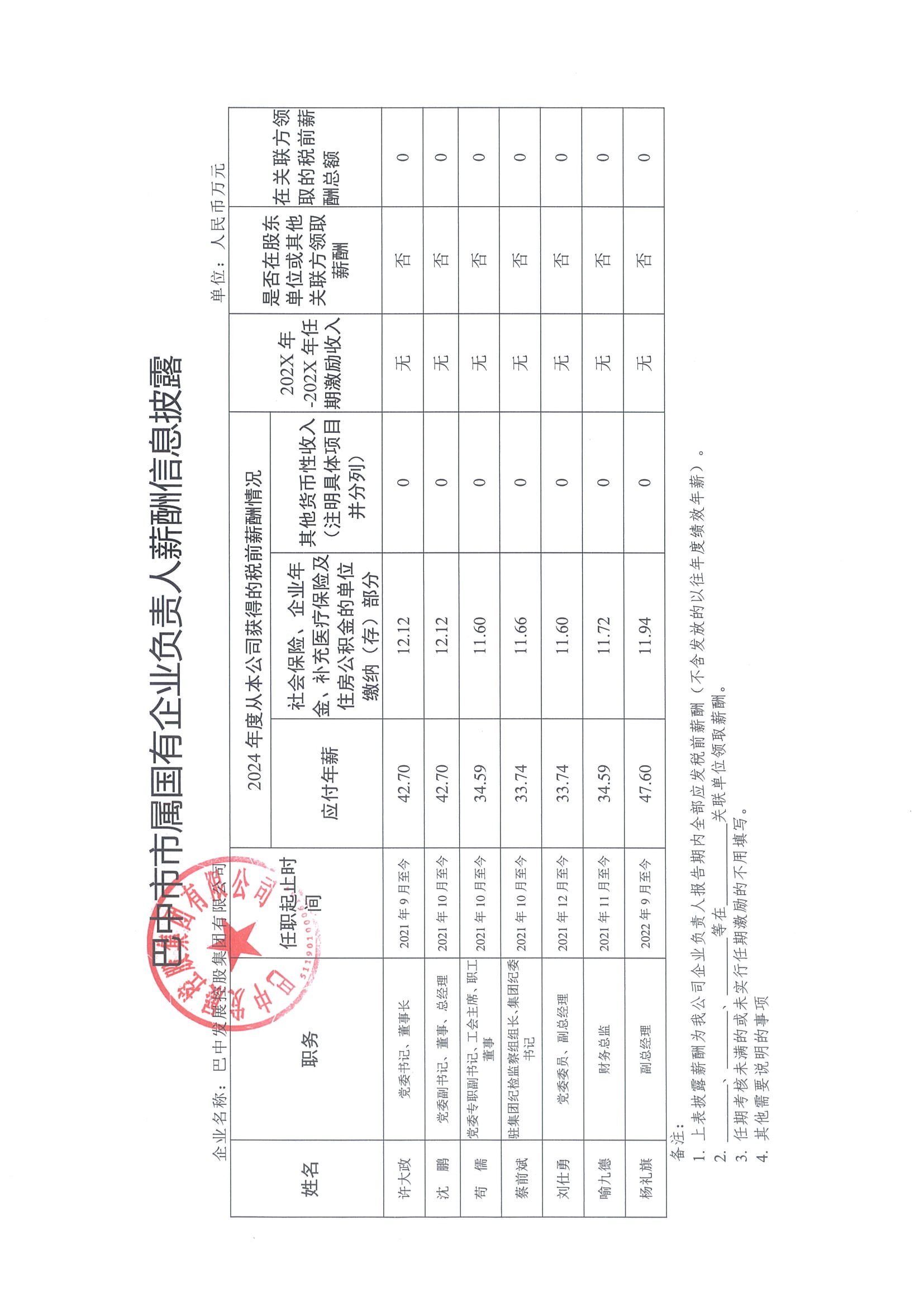 巴中市市屬國有企業(yè)負(fù)責(zé)人薪酬信息披露