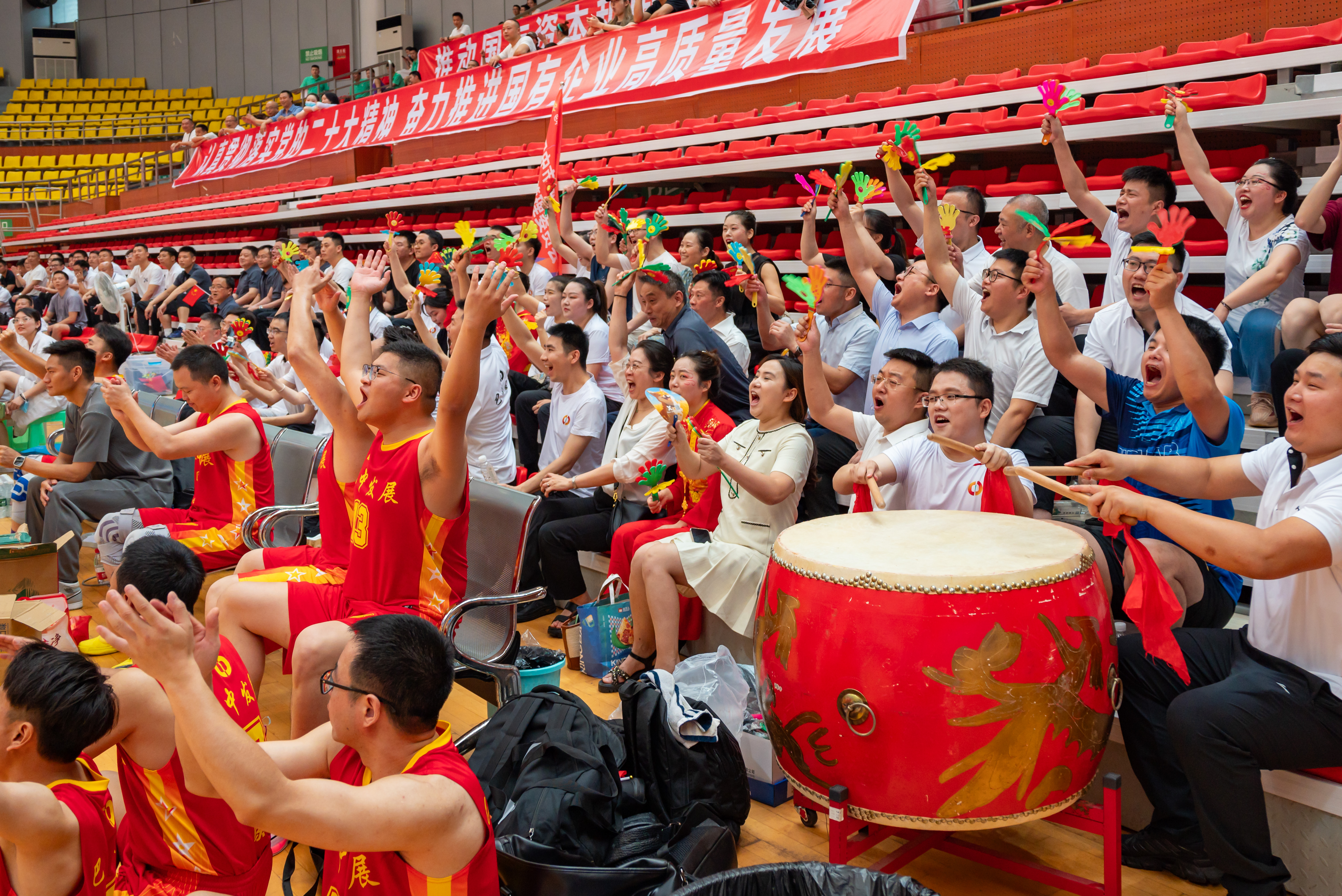 (加油團(tuán)現(xiàn)場吶喊助威)
