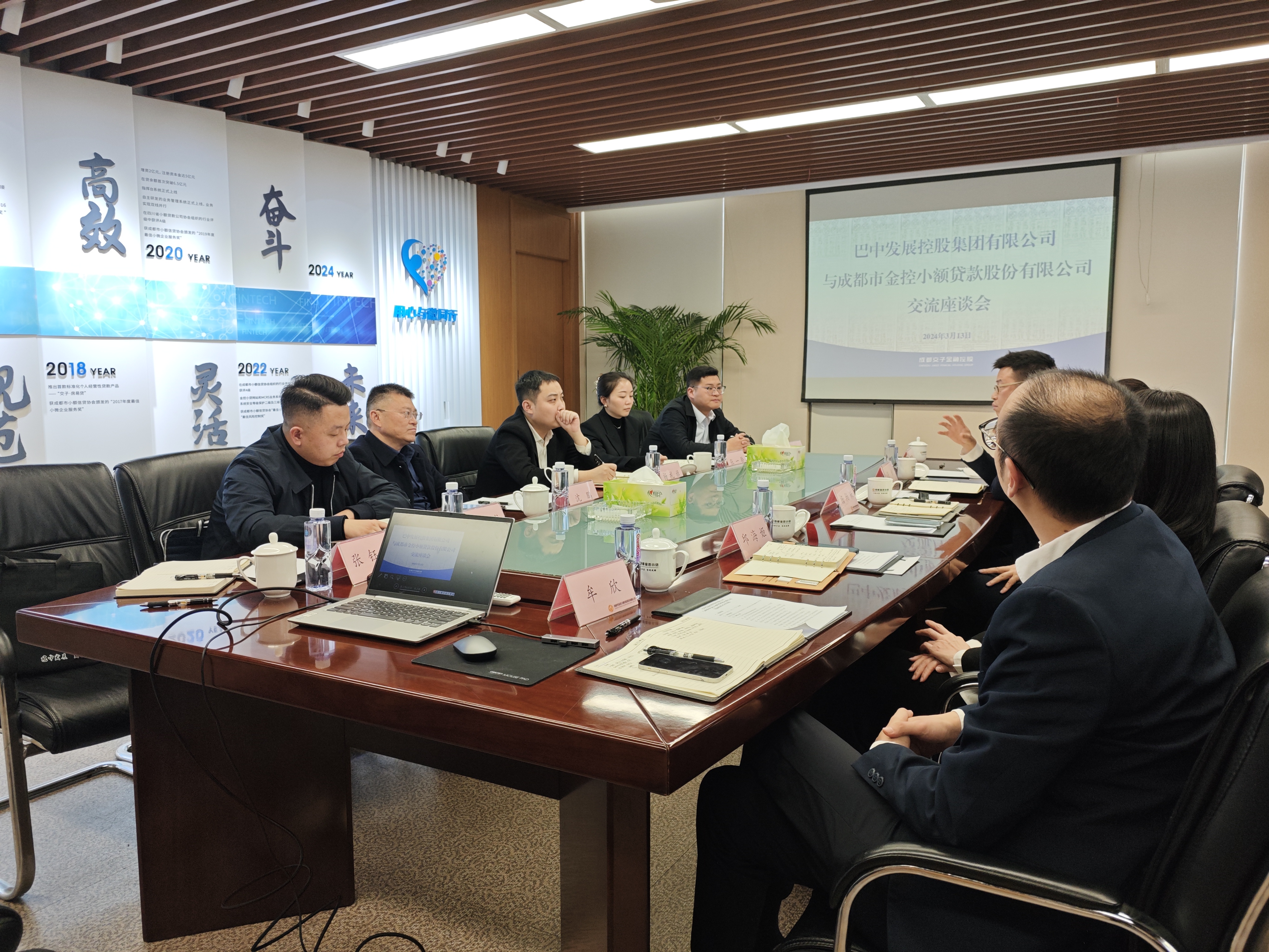在與成都金控小額貸款公司、成都錦融小額貸款公司座談交流中,沈鵬首先介紹了巴中發(fā)展集團(tuán)改革發(fā)展以及金融業(yè)務(wù)板塊布局相關(guān)情況,雙方圍繞小額貸款業(yè)務(wù)開(kāi)展、信息系統(tǒng)搭建、金融產(chǎn)品創(chuàng)新、風(fēng)險(xiǎn)機(jī)制建立、專(zhuān)業(yè)人才隊(duì)伍建設(shè)等方面進(jìn)行了深入交流。